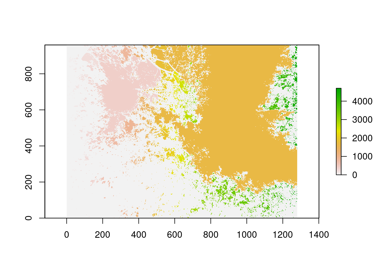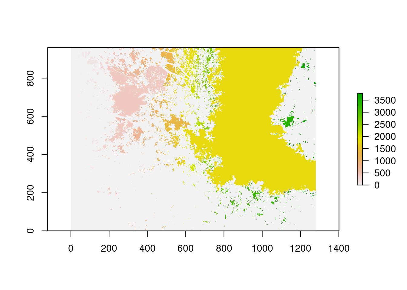 - Retornar os atributos do dossel requer uma classificação dos pixels (os valores 1 no raster binário)